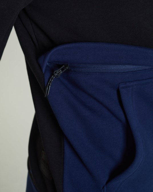 Herren-Hoodie Im Blockfarbendesign Mit Voll Funktionsfähiger Reißverschlusstasche An Der Taille Und Kängurutasche. Elegantes Nahtdetail Am Ärmel, Mit Verdeckter Tasche Am Unterarm. Gummiaufdruck Auf Der Brust Und Verstellbare Kapuze Mit Kordelzug.