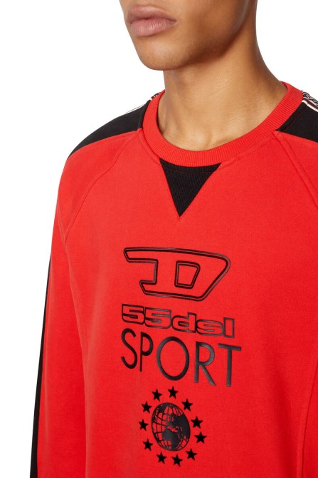 Dieses Herren-Sweatshirt Wurde Für Die Diesel-Sportkollektion Entworfen Und Besteht Aus Loopback-Jersey Aus Einer Baumwollmischung, Das Schweiß Ableitet. Es Hat Eine Normale Passform, Ausgeprägte Nähte Und Nicht Einschränkende Raglanärmel, Die Mit Logo-Jacquard-Bändern Besetzt Sind. Gedruckte Logografiken Zieren Die Vorderseite.