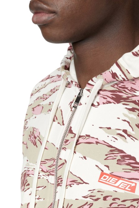 Kapuzen-Sweatshirt In Normaler Passform Aus Loopback-Baumwolljersey. Sein Grafischer Allover-Camouflagedruck Wird Von Einem Wassergedruckten Diesel-Pfeillogo Auf Der Brust Gekrönt.