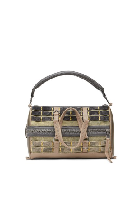 Diese Multifunktionale Herrentasche Aus Der FW Runway Show Collection '22 Kann In Der Hand, über Der Schulter, Crossbody Oder Als Rucksack Getragen Werden. Es Besteht Aus Behandeltem Canvas, Denim Und Leder Und Hat Eine Hellgelbe Innenseite, Die Mit Dem Armeegrünen Farbton Kontrastiert. Ein übergroßes „ovales D“-Logo Ziert Eine Der Seiten.