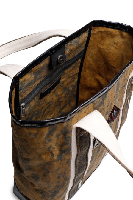 Einkaufstasche Im Vintage-Militär-Look. Hergestellt Aus Behandeltem, Gewachstem Segeltuch, Hut Mit Langen Gurtgriffen Und Strapazierfähigen Planenbesätzen Zur Verstärkung. Abgerundet Mit Einem Dreieckigen Logo-Einsatz Und Silberfarbenen Beschlägen Im Antik-Look. Ungefüttert.