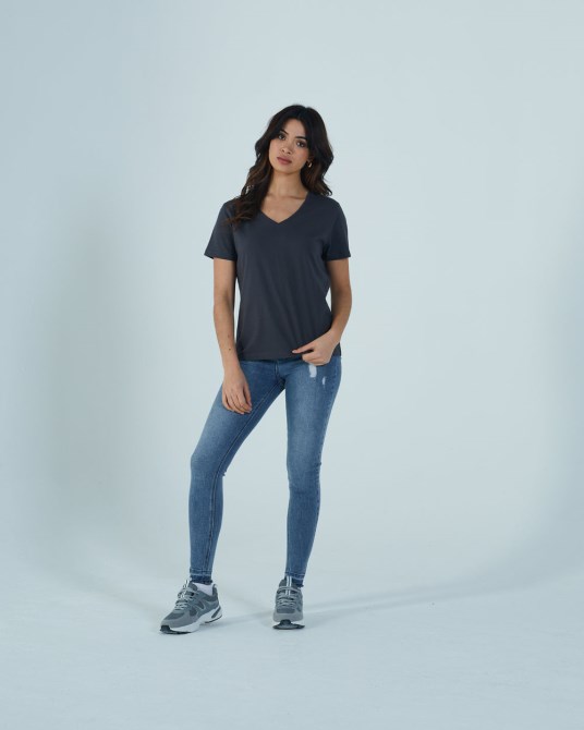 Basic-Baumwoll-T-Shirt Mit V-Ausschnitt, Lockere Passform Mit Aufgesticktem Diesel-Logo.Modell Trägt XS. Es Wird Empfohlen, Bei Ihrer Normalen Größe Zu Bleiben. 100 % Baumwolle