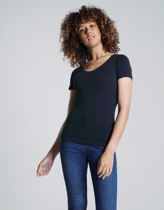 Einfaches T-Shirt Aus Baumwollmischung Mit V-Ausschnitt Und Diesel-Label Am Saum. Das Model Trägt XS. Es Wird Empfohlen, Dass SIE Bei Ihrer Normalen Größe Bleiben. 95 % Baumwolle, 5 % Elastan.