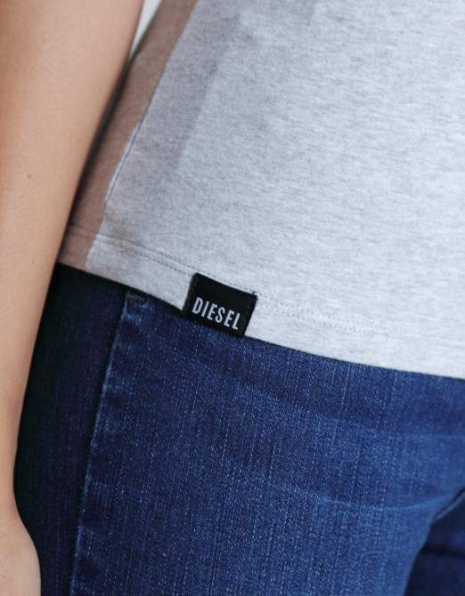 Einfaches T-Shirt Aus Baumwollmischung Mit V-Ausschnitt Und Diesel-Label Am Saum. Das Model Trägt XS. Es Wird Empfohlen, Dass SIE Bei Ihrer Normalen Größe Bleiben. 95 % Baumwolle, 5 % Elastan.
