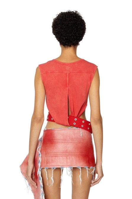 This Slim-Fit-Top For Damen Der FW22 Runway Show Ist Aus Behandelter Stretch-Baumwolle Geschnitten. Es Hat Hohe Seiten Und Einen Canvas-Gürtel Im Military-Stil, Der Durch Die Vorderen Und Hinteren Schlitze Gezogen Wird. Abgerundet Mit Einem Hakenverschluss Und Einem 3D-gestickten D-Patch Auf Der Rückseite. Dieser Artikel Ist Eine Limitierte Auflage.