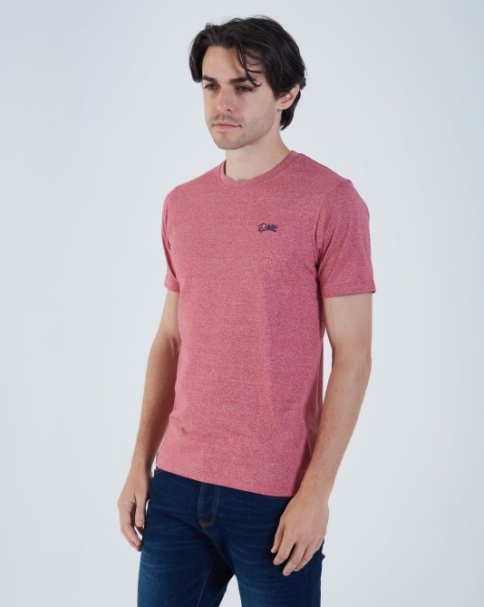 Melange-Basic-T-Shirt Aus Baumwollmischung Mit Diesel-Stickerei Auf Der Brust Und Gewebtem Diesel-Label Am Saum. Das Model Trägt M. Es Wird Empfohlen, Bei Ihrer Regulären Größe Zu Bleiben. 50 % Baumwolle, 50 % Polyester.