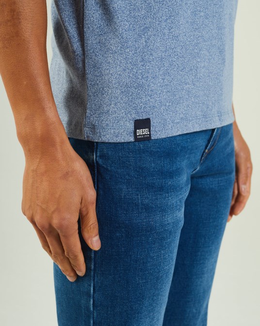 Melange-Basic-T-Shirt Aus Baumwollmischung Mit Diesel-Stickerei Auf Der Brust Und Gewebtem Diesel-Label Am Saum. Das Model Trägt M. Es Wird Empfohlen, Bei Ihrer Normalen Größe Zu Bleiben. 50 % Baumwolle, 50 % Polyester.