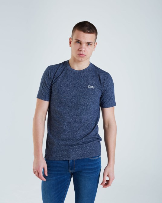 Melange-Basic-T-Shirt Aus Baumwollmischung Mit Diesel-Stickerei Auf Der Brust Und Gewebtem Diesel-Label Am Saum. Das Model Trägt M. Es Wird Empfohlen, Bei Ihrer Regulären Größe Zu Bleiben. 50 % Baumwolle, 50 % Polyester.
