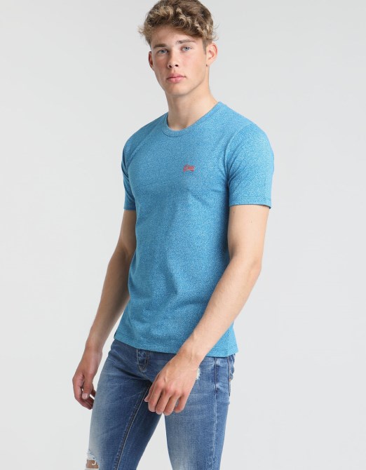 Melange-Basic-T-Shirt Aus Baumwollmischung Mit Diesel-Stickerei Auf Der Brust Und Gewebtem Diesel-Label Am Saum. Das Model Trägt M. Es Wird Empfohlen, Bei Ihrer Regulären Größe Zu Bleiben. 50 % Baumwolle, 50 % Polyester.