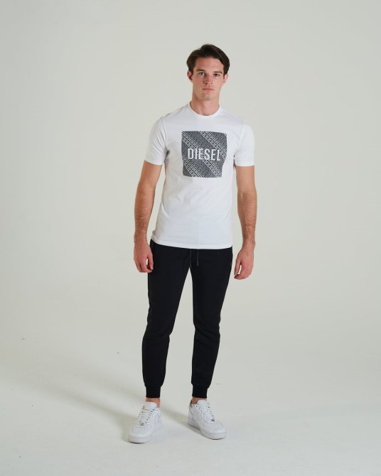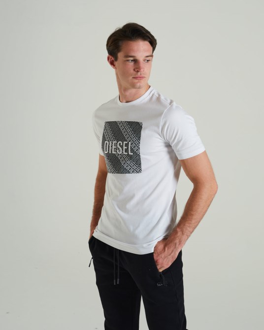 Weiches Baumwoll-T-Shirt Für Herren Mit Supercoolem, Ikonischem DIESEL-Logo Und Reflektierendem DIESEL-Logo Am Nacken.