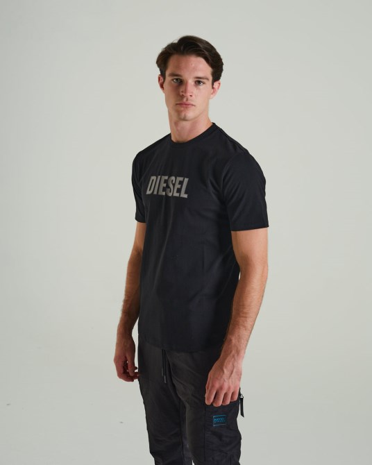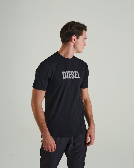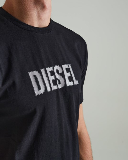 Weiches Baumwoll-T-Shirt Für Herren Mit Coolem Branding Auf Der Brust Und Reflektierendem DIESEL-Logo Im Nacken.