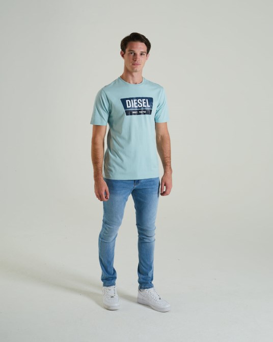 Baumwolljersey-T-Shirt Für Herren Mit Unserem Klassischen Diesel-Tinte-Print Und Einem Gewebten Flaggenetikett In Der Nähe Des Saums.