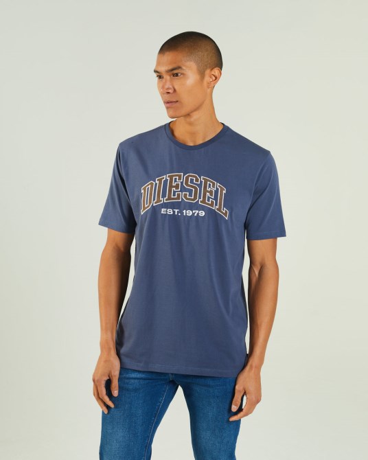Baumwoll-T-Shirt Für Herren Mit Gestickter Applikation Auf Der Brust. Kombiniere Dieses T-Shirt Mit Einem Paar Unserer Diesel Jeans Für Einen Retro-College-Look. Das Model Trägt M. Es Wird Empfohlen, Bei Ihrer Normalen Größe Zu Bleiben. 100 % Baumwolle