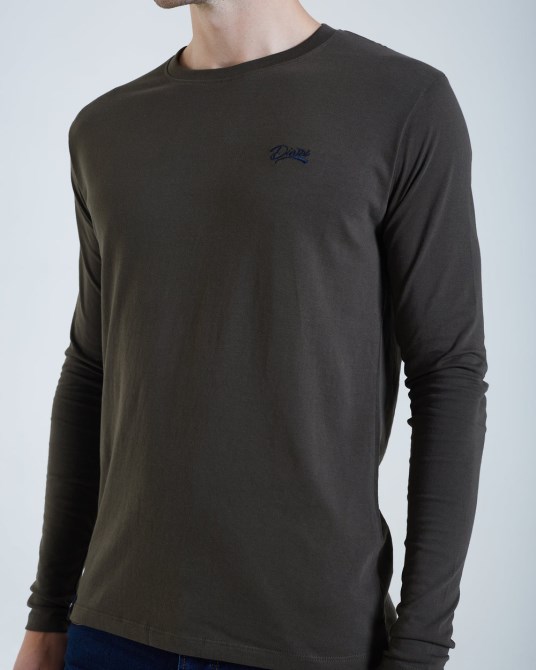 Einfaches Langarm-T-Shirt Aus 100 % Weicher, Gebürsteter Baumwolle Mit Diesel-Stickerei Auf Der Brust Und Gewebtem Diesel-Etikett Am Saum. Normale Passform Mit Rundhalsausschnitt. Das Model Trägt M. Es Wird Empfohlen, Bei Ihrer Regulären Größe Zu Bleiben. 100 % Baumwolle.