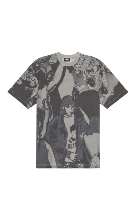 Dieses Herren-T-Shirt Mit Lockerer Passform Ist Teil Der FW22 Runway Show-Kollektion. Der Tanzszenendruck Wurde Während Eines Diesel-Events Aufgenommen Und Für Einen Unregelmäßigen Look überfärbt.