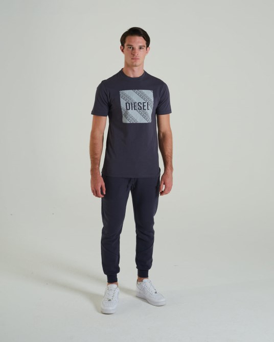 Weiches Baumwoll-T-Shirt Für Herren Mit Supercoolem, Ikonischem DIESEL-Logo Und Reflektierendem DIESEL-Logo Am Nacken.