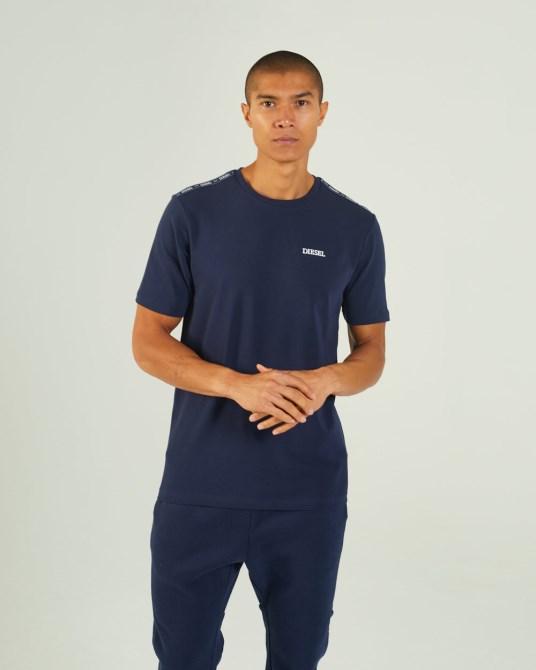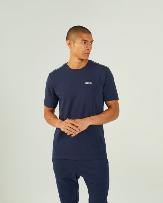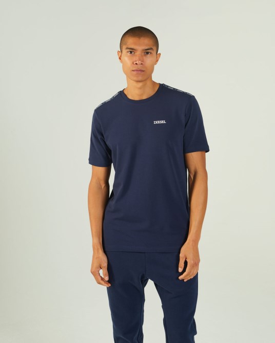 Herren-T-Shirt Aus Baumwoll-Stretch-Jersey Mit Superweicher Oberfläche. Stretch Für Komfort Und Bewegung Hinzugefügt. Diesel-Gummilogo Auf Der Brust. Diesel-Stretch-Tape Auf Den Schultern. Kombinieren Sie Es Mit Unserem Harrison Jogger Für Einen Kompletten Look. Das Model Trägt M. Es Wird Empfohlen, Bei Ihrer Normalen Größe Zu Bleiben. 95 % Baumwolle / 5 % Elastan