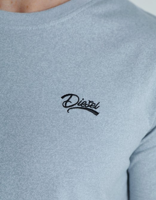 Melange-Basic-T-Shirt Aus Baumwollmischung Mit Diesel-Stickerei Auf Der Brust Und Gewebtem Diesel-Label Am Saum. Das Model Trägt M. Es Wird Empfohlen, Bei Ihrer Regulären Größe Zu Bleiben. 50 % Baumwolle, 50 % Polyester.