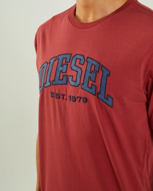 Baumwoll-T-Shirt Für Herren Mit Gestickter Applikation Auf Der Brust. Kombiniere Dieses T-Shirt Mit Einem Paar Unserer Diesel Jeans Für Einen Retro-College-Look. Das Model Trägt M. Es Wird Empfohlen, Bei Ihrer Normalen Größe Zu Bleiben. 100 % Baumwolle