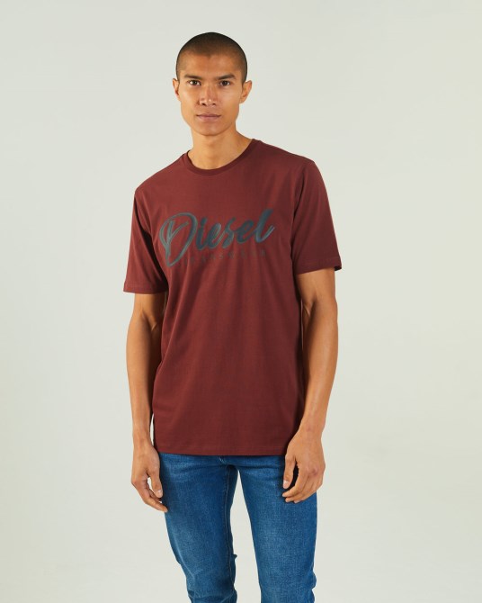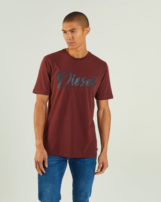 Herren-Baumwoll-T-Shirt Mit Gummiaufdruck Auf Der Brust. Kombinieren Sie Dieses T-Shirt Mit Einem Paar Unserer Dunkel Gewaschenen Diesel Jeans Für Einen Eleganten Jeanswear-Look. Das Model Trägt M. Es Wird Empfohlen, Bei Ihrer Normalen Größe Zu Bleiben. 100 % Baumwolle