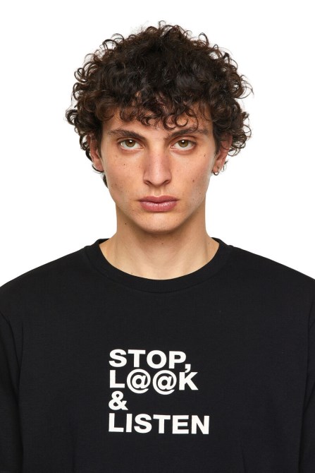 T-Shirt In Normaler Passform Aus Baumwolljersey. Auf Der Brust Befindet Sich Ein „Stop, L@@k And Listen“-Aufdruck, Während Der Rücken Mit Einem Tonalen Diesel-Schriftzug Bestickt Ist.