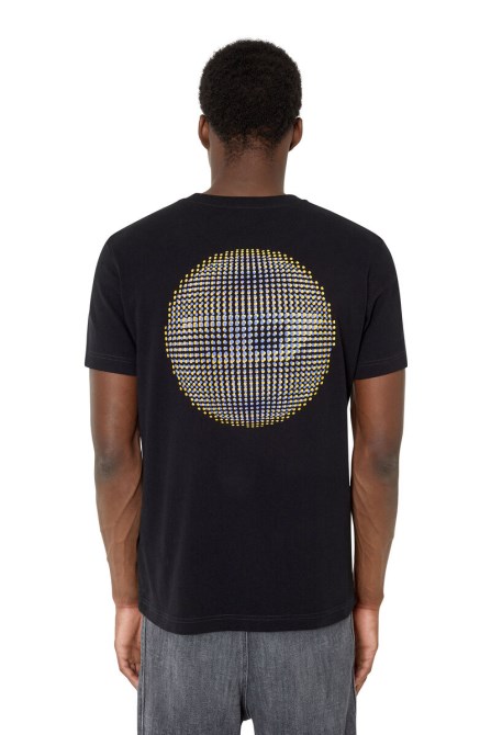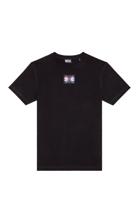 Schmal Geschnittenes Herren-T-Shirt Aus Baumwolljersey Mit Roheffekt. Auf Der Vorderseite Befindet Sich Ein „X-55“-Aufnäher Aus Jacquard, Während Die Rückseite Mit Einem Optischen D-Print Verziert Ist.