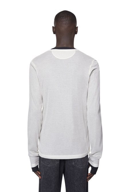 Dieses Schmal Geschnittene Longsleeve Ist Teil Der Laufstegkollektion Frühjahr-Sommer 2022. Es Ist Mit Einem Logodruck Und Einer Kleinen D-Applikation Verziert Und Besteht Aus Zwei Gerippten Lagen: Eine Mit Einem Subtil Eckigen Ausschnitt Aus Superleichtem Modal, Die Andere Aus Schwerer Stretch-Baumwolle Als Basis.