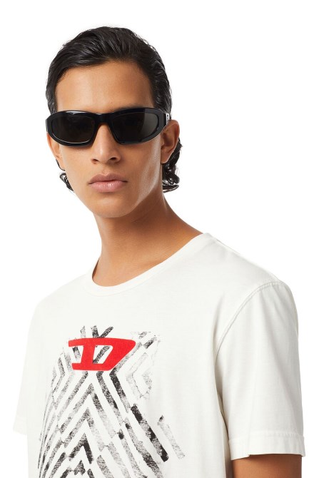 Schmal Geschnittenes T-Shirt Aus 100 % Baumwolle. Die Grafische Vorderseite Hat Einen Optischen Effekt, Angereichert Mit Einem Beflockten „D“-Logo In Einer Kontrastfarbe.