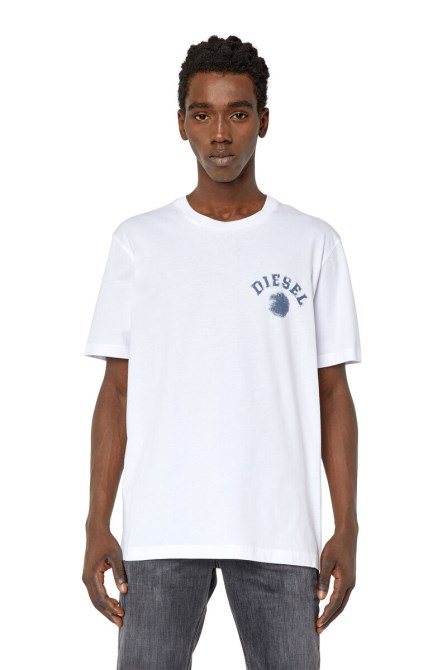 Herren T-Shirt Mit Normaler Passform. This Aus Bio-Baumwolle Gefertigte Modell Ist Auf Der Brust Mit Einem Aufdruck Eines Kreises Und Diesel-Schriftzugs Versehen, Eine Vergrößerte Version Der Grafik Prangt Auf Dem Rücken.