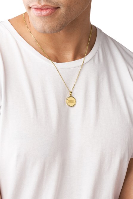 Diese Halskette Mit Anhänger Von Diesel Besteht Aus Goldfarbenem Edelstahl Und Einem Karabinerverschluss.