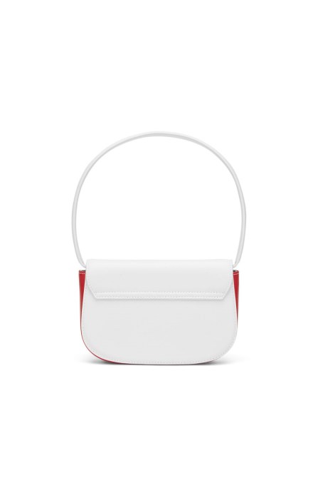 This Kleine, Strukturierte Tasche Aus Nappaleder Ist In Blockfarben Gehalten Und Mit Einer Emaillierten „D“-Logoplakette Aus Metall Auf Der Klappe Versehen. Es Hat Einen Griff, Der über Die Schulter Passt, Und Einen Optionalen Gürtelähnlichen Riemen Zum Tragen über Dem Körper.