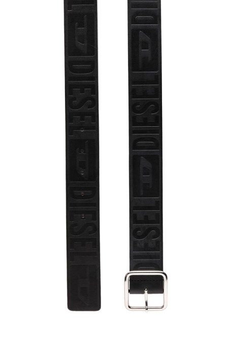 Herrengürtel Aus Leder Mit Durchgehend Geprägtem „Diesel D“-Branding. Komplett Mit Einer Quadratischen Spitze Und Einer Polierten Silberschnalle.