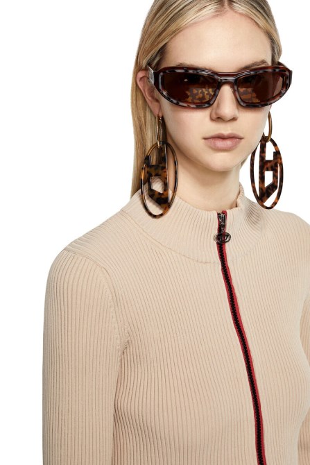 This Schmal Geschnittene Cardigan Ist Aus Einer Mit Lycra Beschichteten Viskosemischung Im Rippenstrick Gestrickt, Hat Einen Angedeuteten Halsausschnitt Und Einen Kontrastierenden Reißverschluss Mit Einem D-Logo-Schieber Aus Metall.