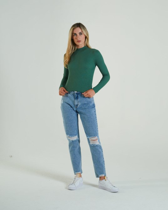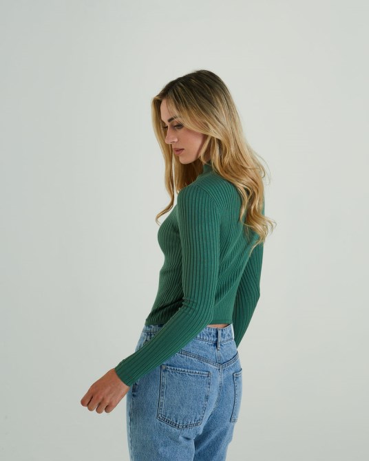 Figurbetonter Rippstrick Mit Stehkragen. Abgerundet Mit Einem Diesel-Metallabzeichen Am Saum.