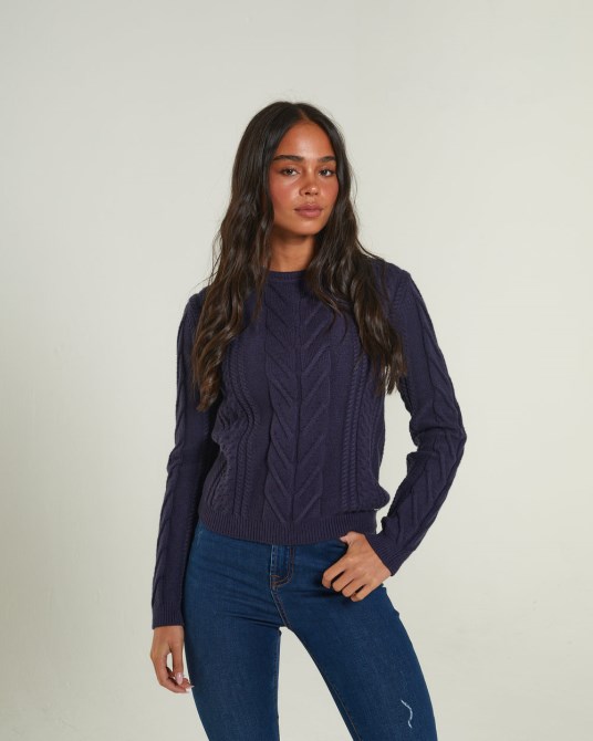Pullover Mit Zopfmuster Und Geripptem Kragen, Saum Und Bündchen. Abgerundet Mit Einem Diesel-Metallabzeichen über Dem Saum.