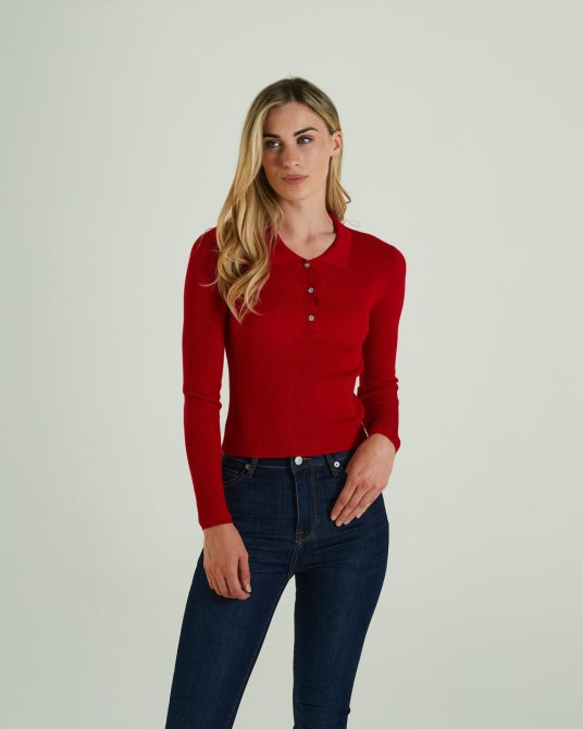 Figurbetonter Rippstrick Mit Geripptem Kragen Und Drei Glitzernden Knöpfen An Der Vorderen Knopfleiste. Abgerundet Mit Einem Diesel-Metallabzeichen Am Saum.