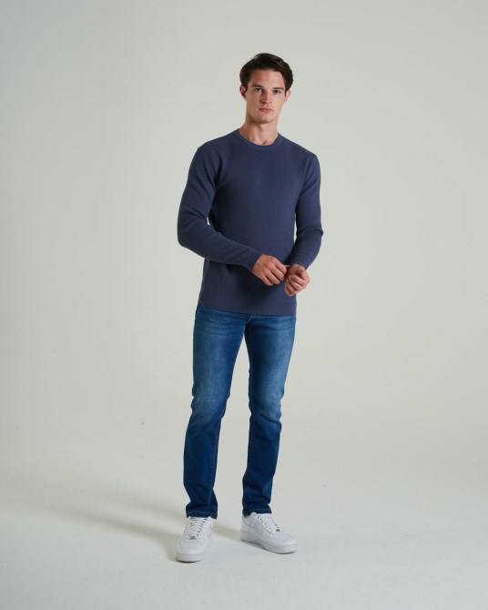 Strukturierter Strickpullover Mit Rundhalsausschnitt, Gerippte Bündchen Und Saum, Diesel-Markenabzeichen.