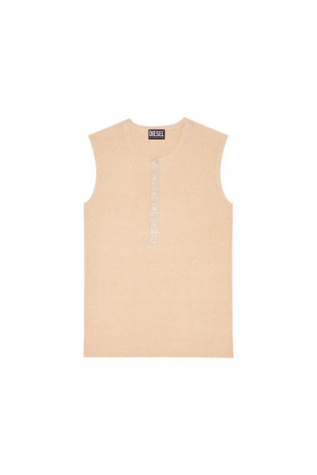 Dieses Henley-Tanktop Ist Eng Bezogen Und Mit Einer Plattierungstechnik Im Rippenstrick Für Einen Subtilen Zweifarbigen Effekt Gestrickt. Teil Der Laufstegkollektion SS22 Von Diesel, Aus Feiner, Extralangstapeliger Baumwolle Und Mit Druckknöpfen Befestigter Knopfleiste In Wildlederoptik.