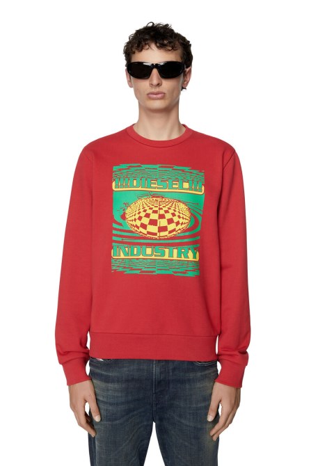 Herren-Sweatshirt In Normaler Passform Aus Baumwoll-Jersey-Mischgewebe Mit Weichem, Geschlungenem Rücken. Detailliert Mit Einem Psychedelischen Diesel Industry-Print Auf Der Brust.