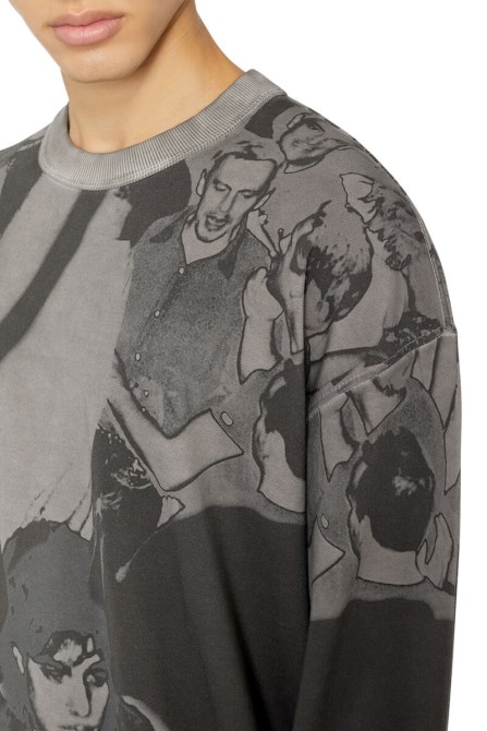 Jersey-Sweatshirt Mit Rundhalsausschnitt Und Lockerer Passform. This Pullover Aus Der Herbst/Winter 2022 Runway Show-Kollektion Zeigt Einen Allover-Print Einer Tanzszene, Die Während Eines Echten Diesel-Events Aufgenommen Wurde, Und Ist Für Einen Ungleichmäßigen, Verblassten Effekt In Einem Tonalen Farbton überfärbt.