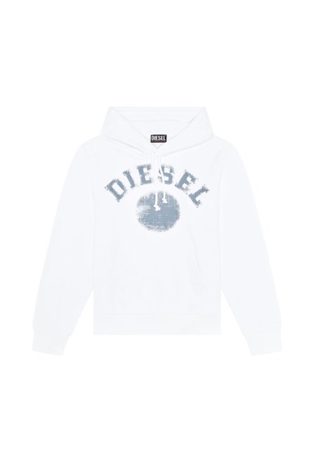Dieses Kapuzen-Sweatshirt Für Herren Ist Aus Einer Baumwollmischung In Normaler Passform Geschnitten. Die Brust Ist Mit Einem Diesel-Schriftzug Und Einer Kreisgrafik Bedruckt, Die Einen Verblassten Effekt Und Eine Mischung Aus Matten Und Gummierten Oberflächen Zur Schau Stellt.