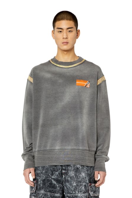 This Weit Geschnittene Baumwoll-Jersey-Sweatshirt Für Herren Ist Mit Bedruckten Exemplaren An Ausschnitt, Schultern Und Innenärmeln Aktualisiert. Abgerundet Mit Einer Gewaschenen Behandlung Für Einen Getragenen Look, Ist Es Mit Einem Jacquard-Patch „K4055“ Von Diesel Auf Der Brust Gebrandmarkt.