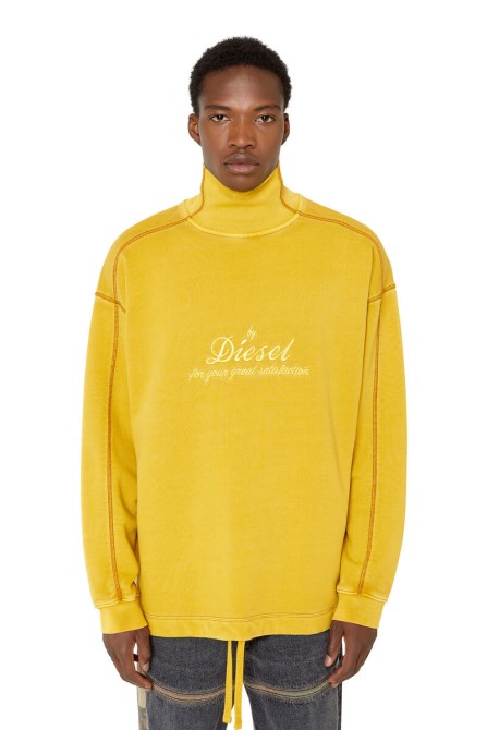 Herren-Sweatshirt Mit Stehkragen Und Lockerer Passform Mit überschnittenen Schultern. Es Besteht Aus Rohbaumwolle Mit Schlaufenrücken Und Ist Für Einen Lebendigen Look Stückgefärbt. Abgerundet Mit Kontrastierenden Ziernähten Und Einem Gestickten Kursiven Diesel-Logo.